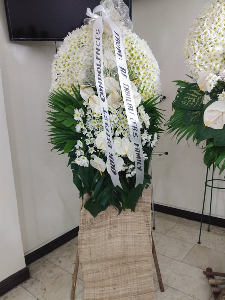 Serenity Prayer !Ivory and soft peach roses, pink carnations, and blue belladonna are accented with yellow blossoms. Accented with sprigs of green, this basket arrangement conveys your deepest sympathies. |