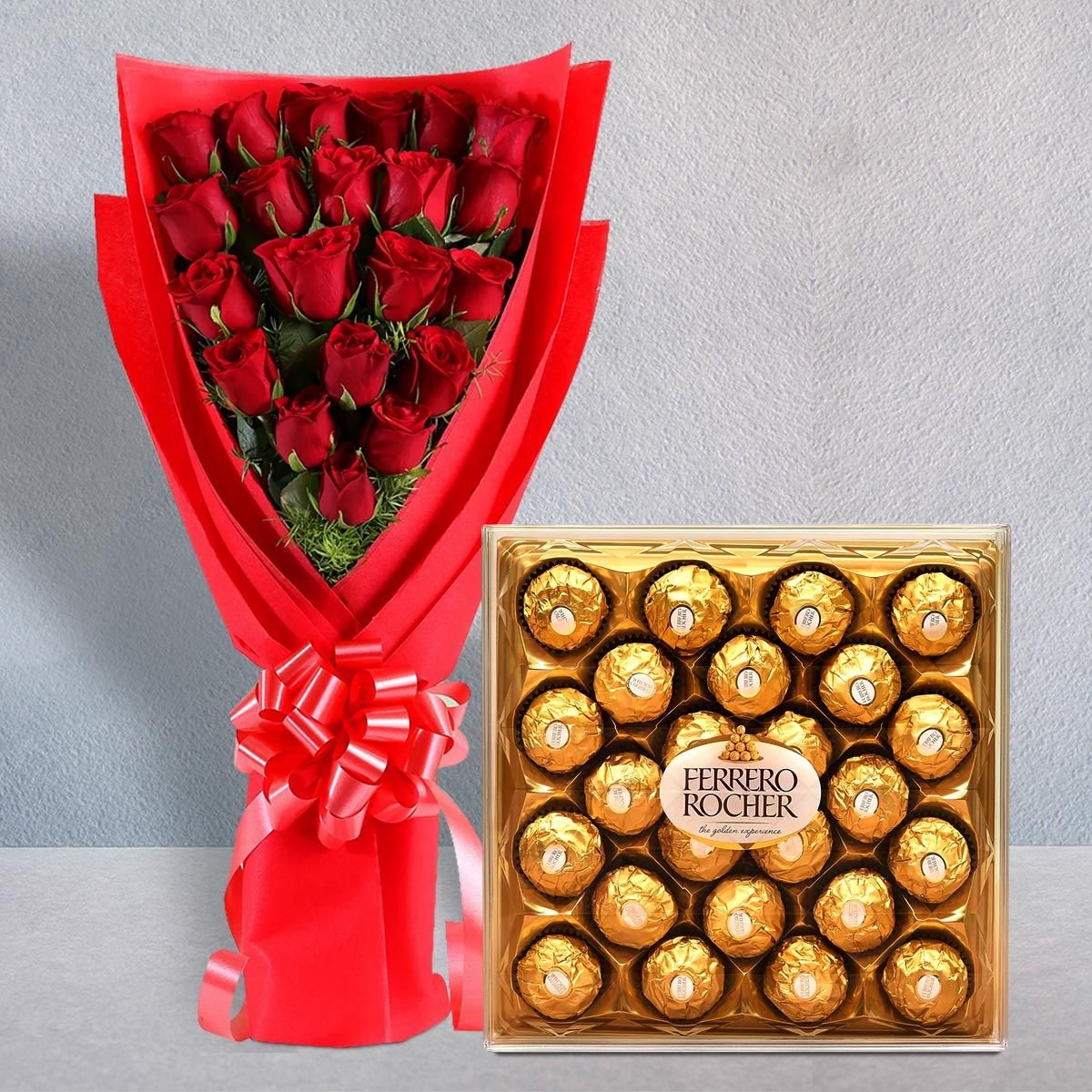 COMBO # 224 RED ROSES BOUQUET W/FERRERO 24 BOX |